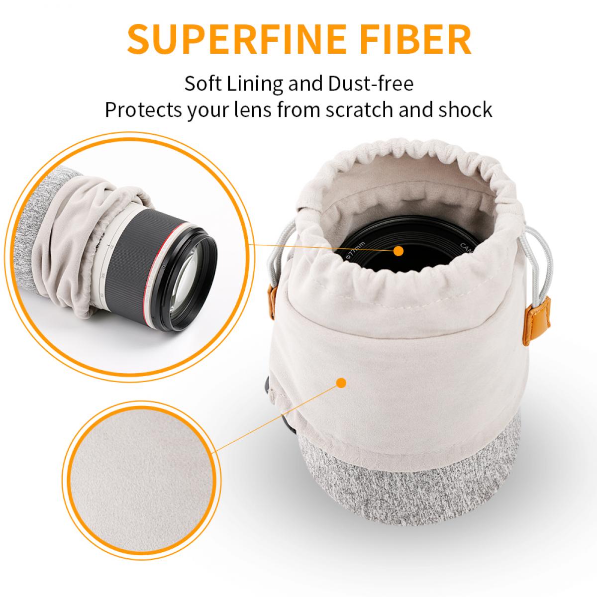 Camera Lens Bag, Protective Lens Pouch Bag 2L, 2-in-1 Neoprene Lens Carry Case Compatible with Multiple Sizes Camera Lens 10*18cm