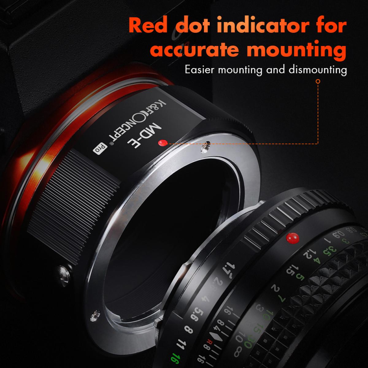 MD to NEX Lens Mount Adapter for Minolta MD MC Mount Lens to NEX E Mount Mirrorless Cameras for Sony A6000 A6400 A7II A5100 A7 A7RIII K&F Concept