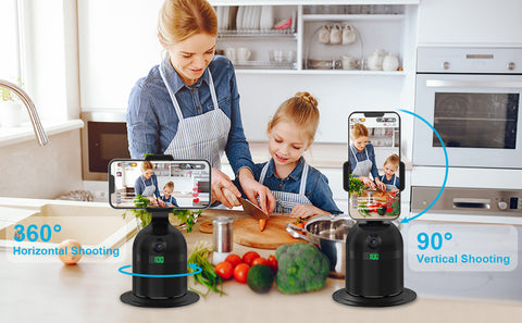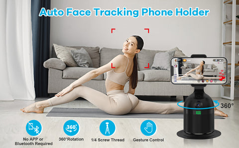• * Easy to use, no APP required: Auto-tracking tripod is easy to use, just press the button and it will automatically rotate 360 degrees to track your movements. You do not need to download any APP or connect to Bluetooth, which can better protect your privacy.