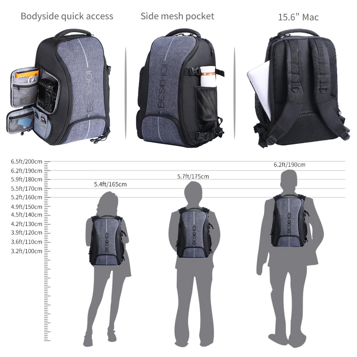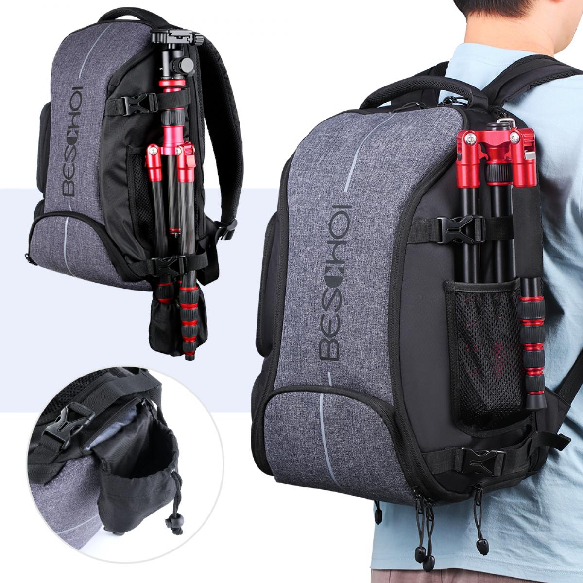 - 【Tripod holder & Rain Cover】 Contains a special side compartment with a strap and buckle to safely transport the tripod or hold water bottle ; Rain cover is on the bottom.
