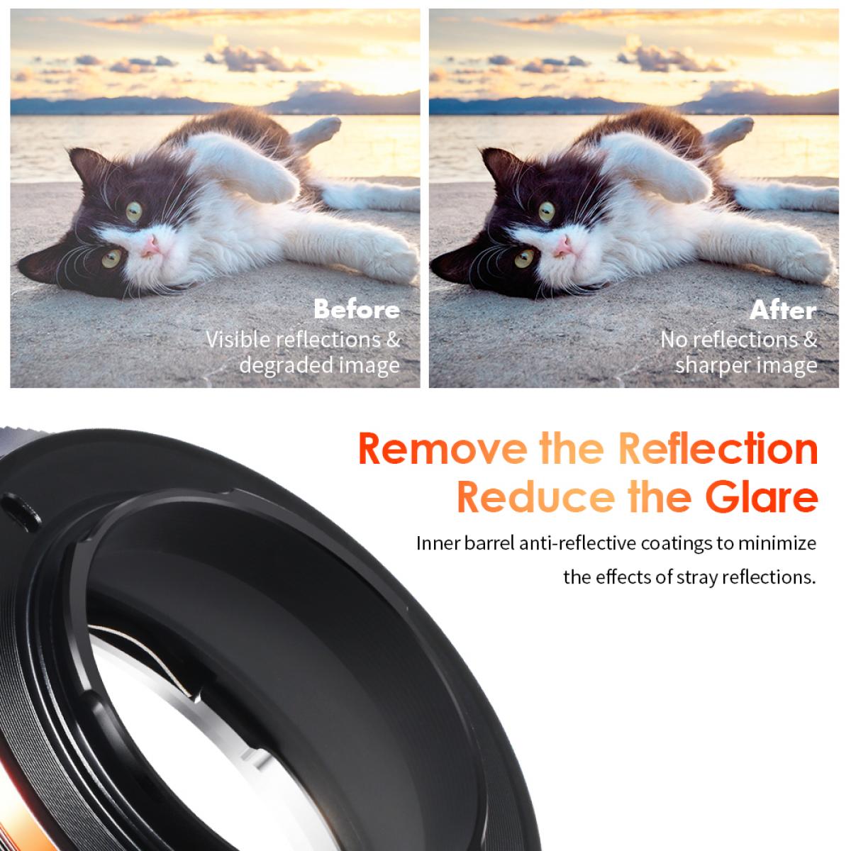 - * High-precision perfect transfer, aluminum-magnesium alloy ring body, fine copper bayonet will not wear the lens, the workmanship is very exquisite, tightly and smoothly combined with the bayonet, receive focus, play the lens macro function, and can be infinitely close focal.