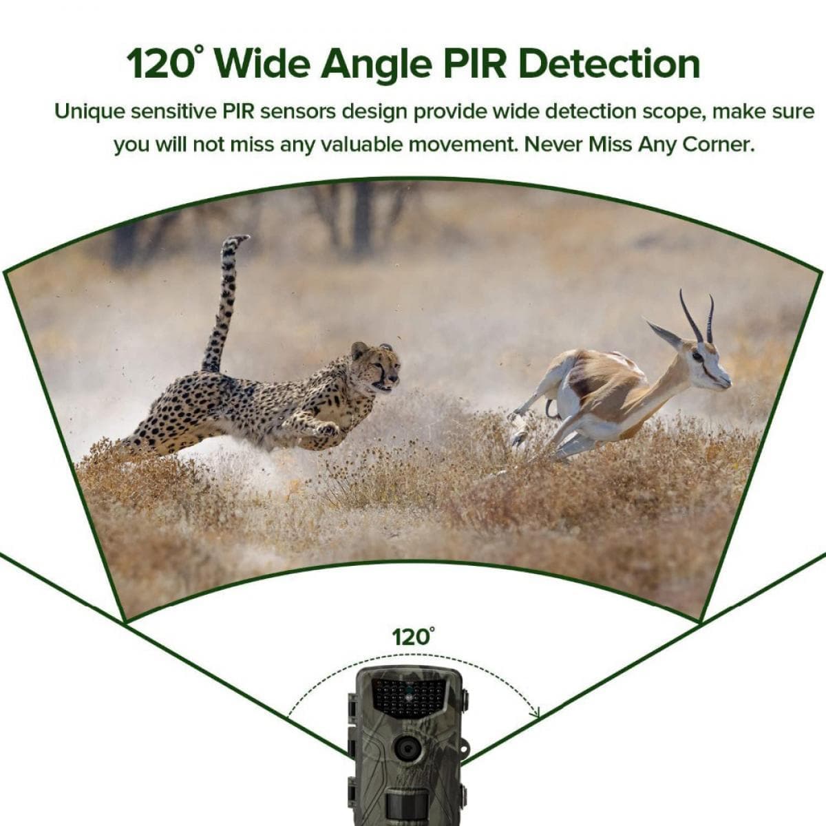• 65ft/20m sensing distance PIR detection angle 120°