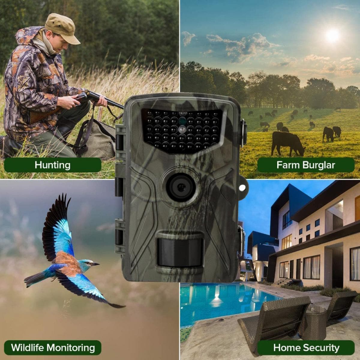 • 40 PCS Infrared 850nmLED CMOS ultra-clear sensor, large aperture lens, intelligent imaging, producing clear night vision. It also has fast motion detection and non-glow invisible infrared technology, which is perfect for outdoor wildlife tracking and home safety, stealth and will not scare any animals.