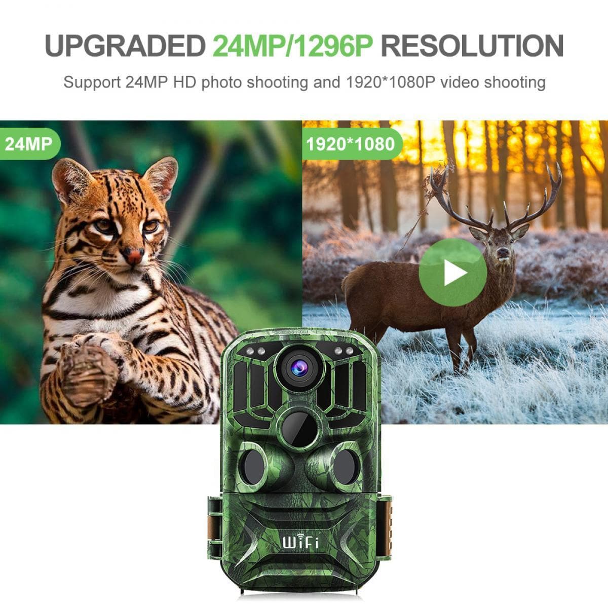 • 【24MP Image & 1296P Video Super HD Resolution】With 3 infrared sensors, the high-sensitive camera detects and records every breathtaking motion with lower power consumption. And the camera captures up to 24MP high-quality images and 1296P video with super clear sound, recording every moment of vivid wildlife and natural beauty with its wealth of detail.